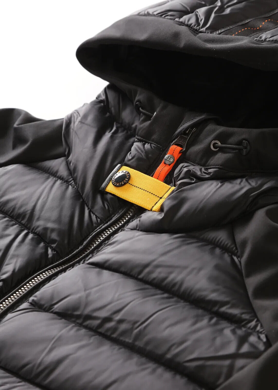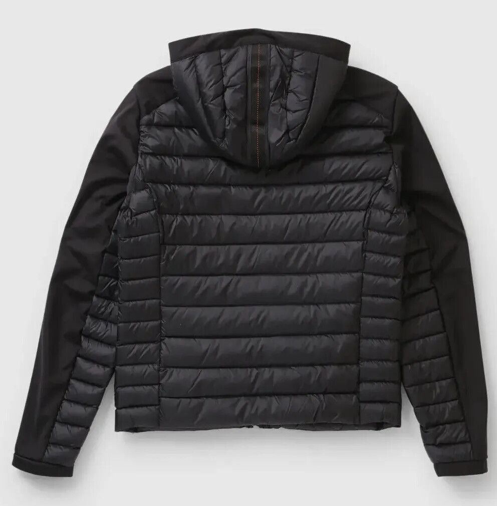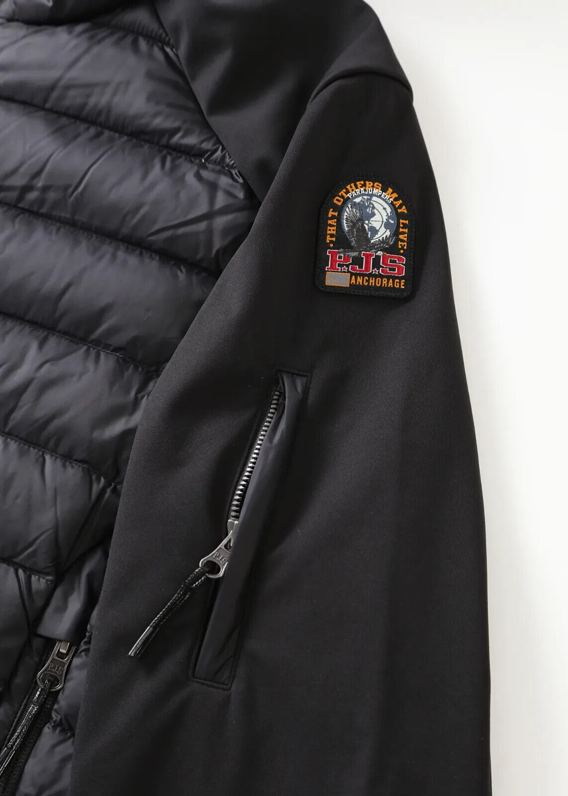 The Parajumpers Kinari Jacket is slightly warmer and more weather proof than most warm ups. This style from guest designer Yoshinori Ono combines soft shell fabric for the sleeves with a 20 den down filled nylon taffeta for the body.