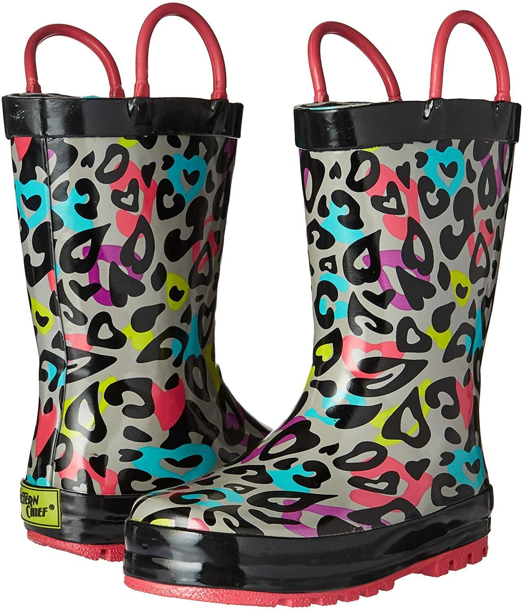 WESTERN CHIEF KIDS GROOVY LEOPARD GIRLS RAIN BOOT sz 8 EU 24 BLACK 2410275B