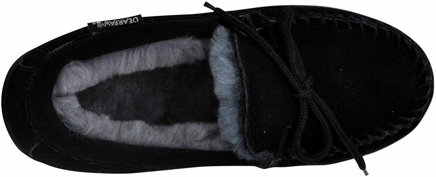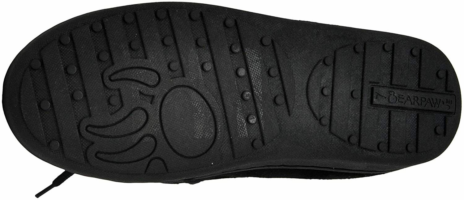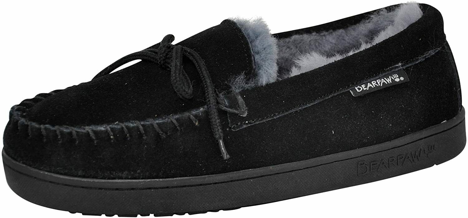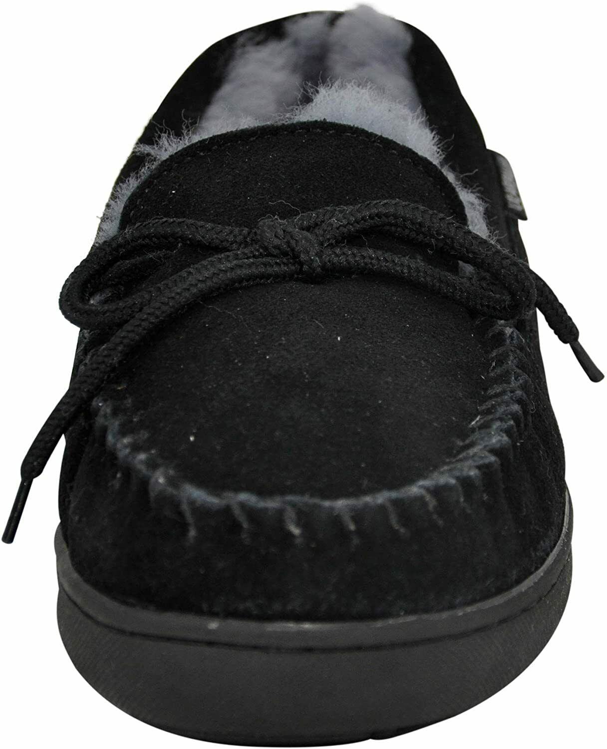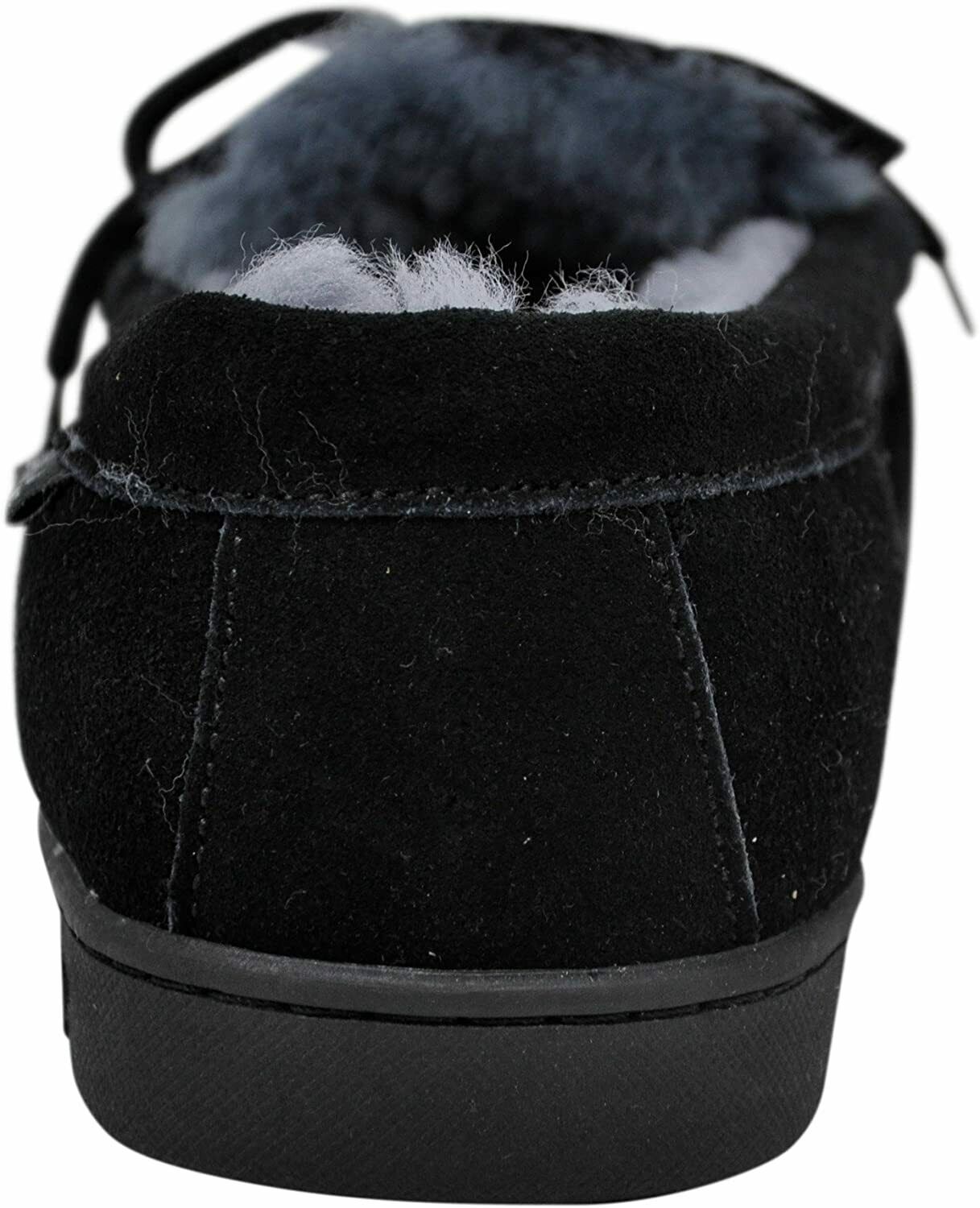 BEARPAW MENS MOC II SHEEPSKIN MOCCASIN SLIPPERS BLACK GREY 8 COZY LINED COMFORT